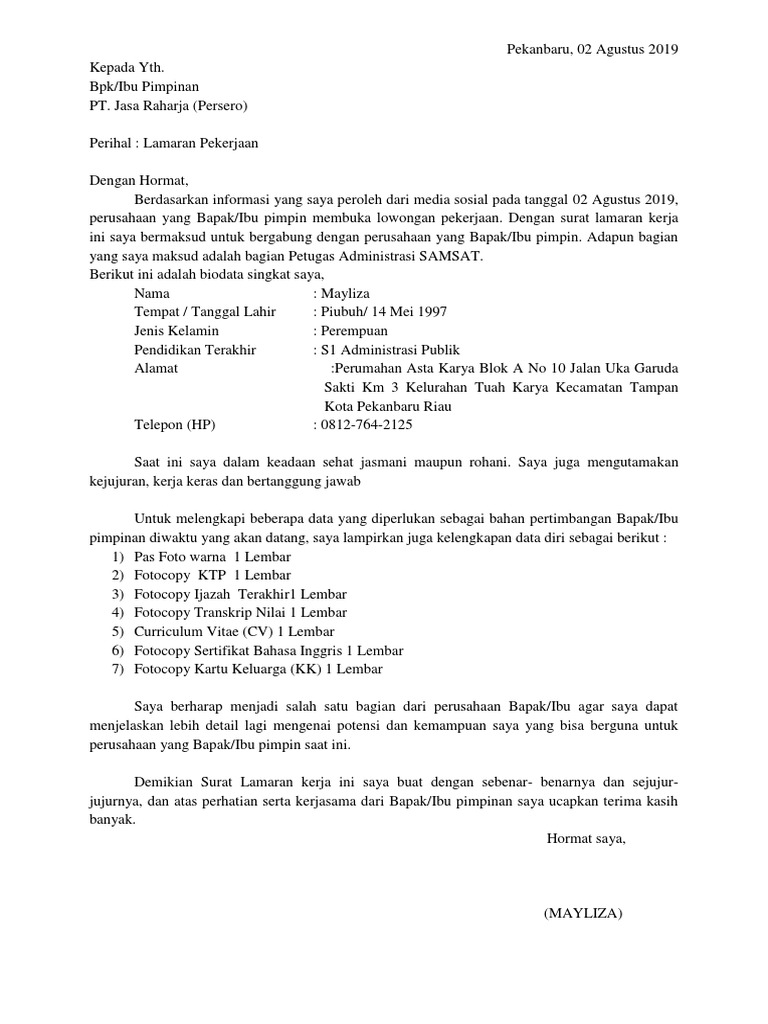 Lamaran Kerja PT ANGKASA PURA SUPPORTS.docx from imgv2-1-f.scribdassets.com Salah satu jenis perusahaan yang menggiurkan bagi banyak orang ialah bumn. Contoh surat lamaran kerja di pt. Dan panduan tips melamar kerja agar cepat. Contoh surat lamaran kerja yang baik dan benar untuk dijadikan referensi dalam usaha mencari kerja di sebuah perusahaan sesuai dengan keahlian kamu. Contoh surat lamaran kerja di pt pnm bumn. Contoh surat lamaran cpns dan pernyataan cpns 2021 kemendikbud, kemenag, kemenkumham, kemenlu bisa didownload dalam format pdf dan doc. Masalahnya sedikit yang memberikan contohnya secara lengkap. Contohh surat lamaran kerja doc.
